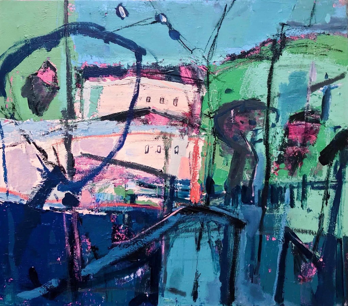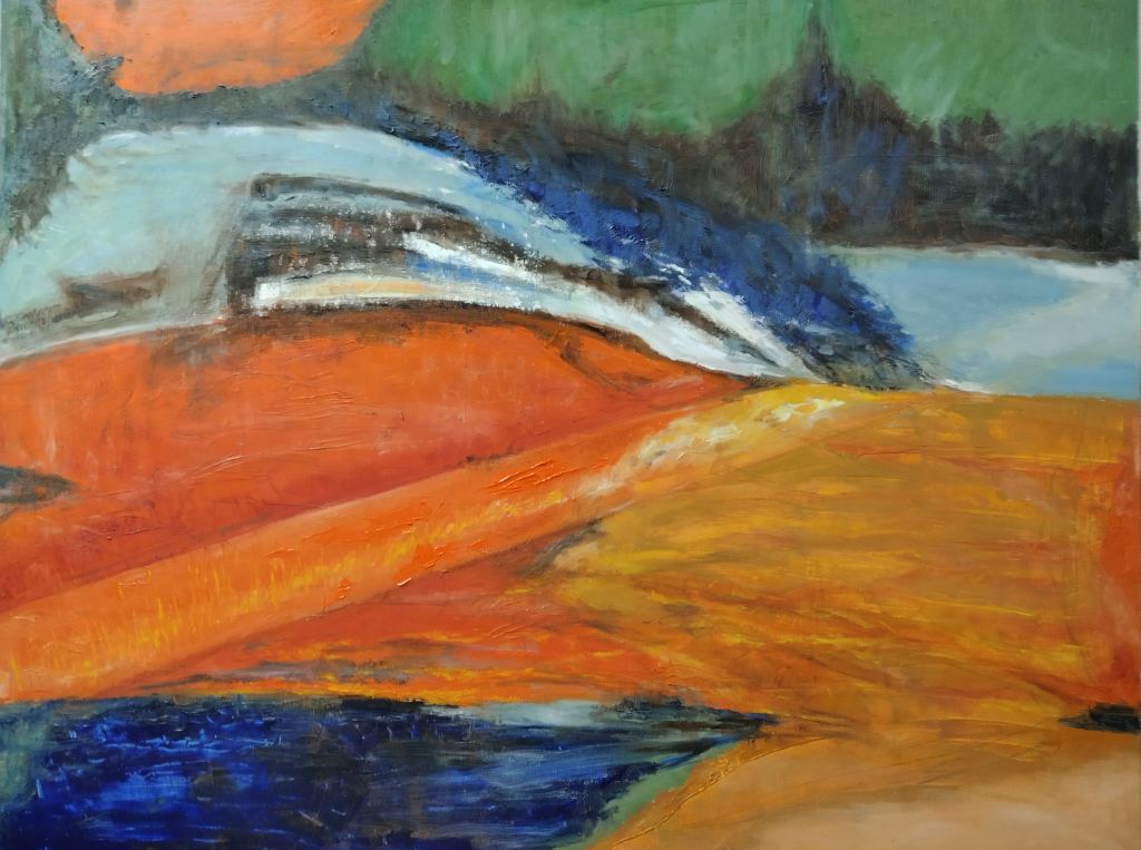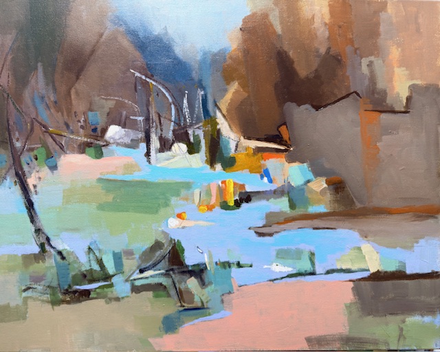 色塊如低語,記憶在水灣停駐。