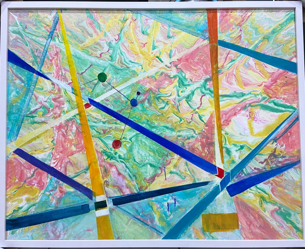 尺寸:91 x 72.5公分 日期:2024 媒材:壓克力媒材 作品說明: 「淮南子-天文訓」云:“上下謂之宇,古今謂之宙”。“宇”就是空間,‘’宙 ”就是時間,而所謂的“宇宙 ”就是我們所處的 “時空”。