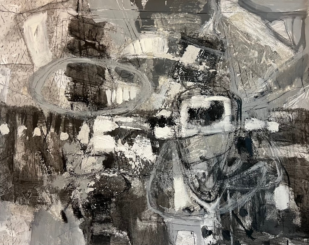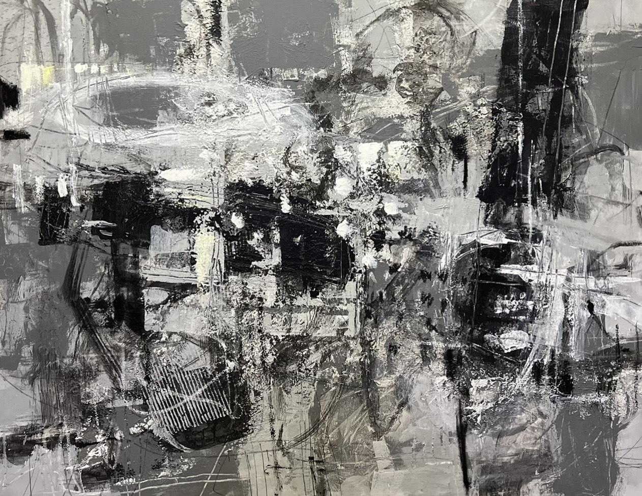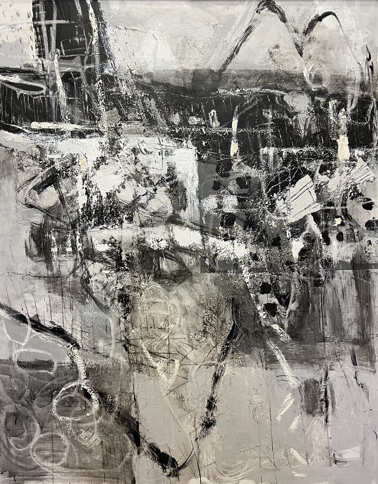 There is a subtle sense of contradiction: there is order but chaos, struggle but also peace. This is my deep understanding of life. The faint bright colors in the painting are like the hope that emerges from the cracks in life, shuttling back and forth between depression and hope.