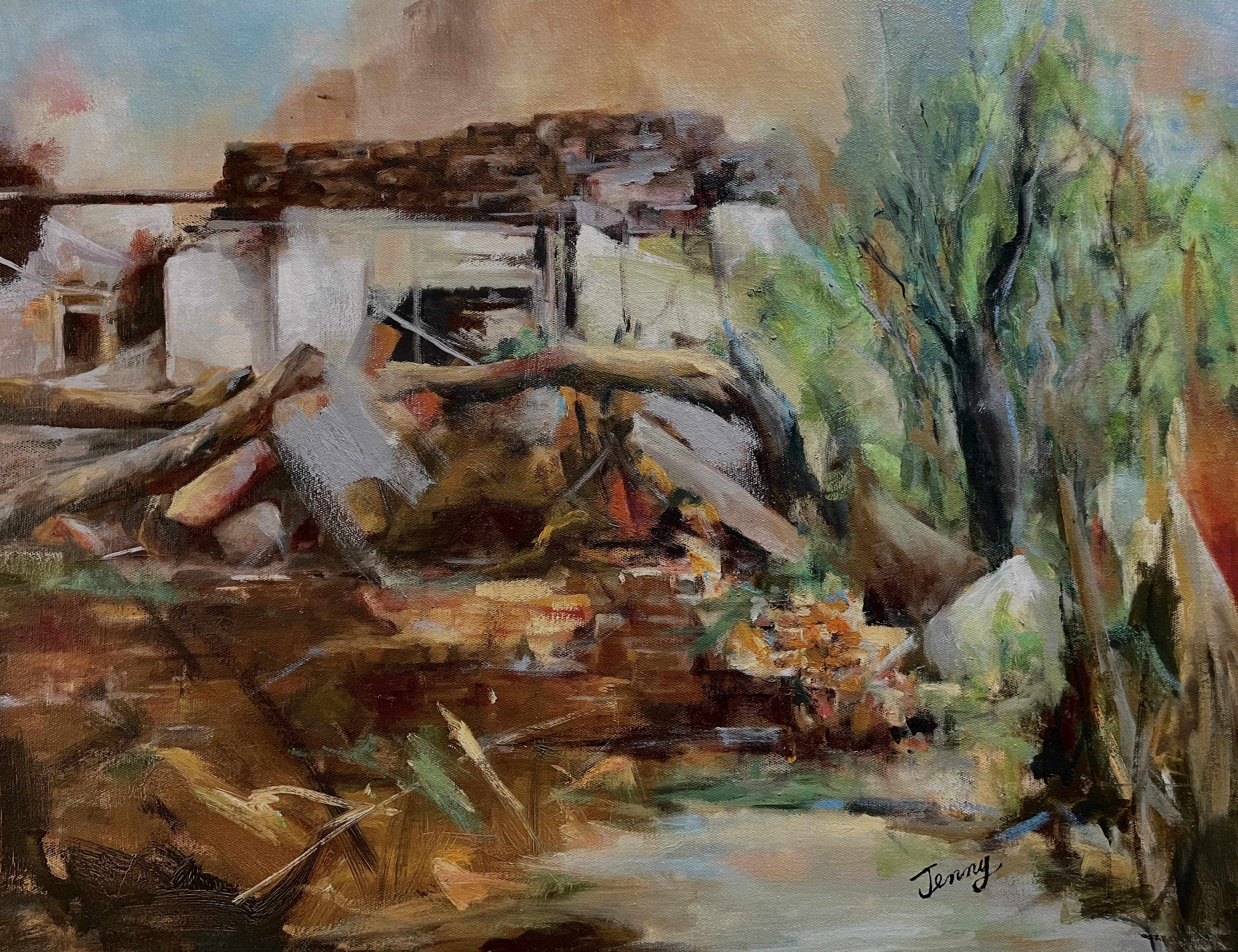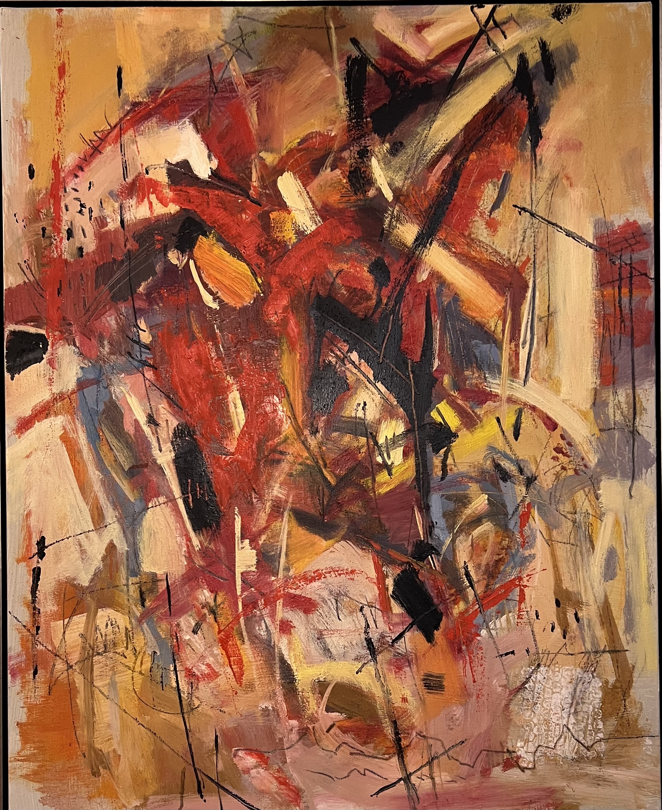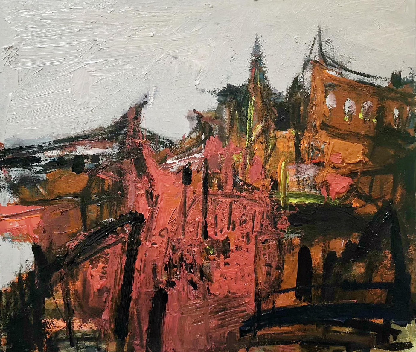 There is a subtle sense of contradiction: there is order but chaos, struggle but also peace. This is my deep understanding of life. The faint bright colors in the painting are like the hope that emerges from the cracks in life, shuttling back and forth between depression and hope.