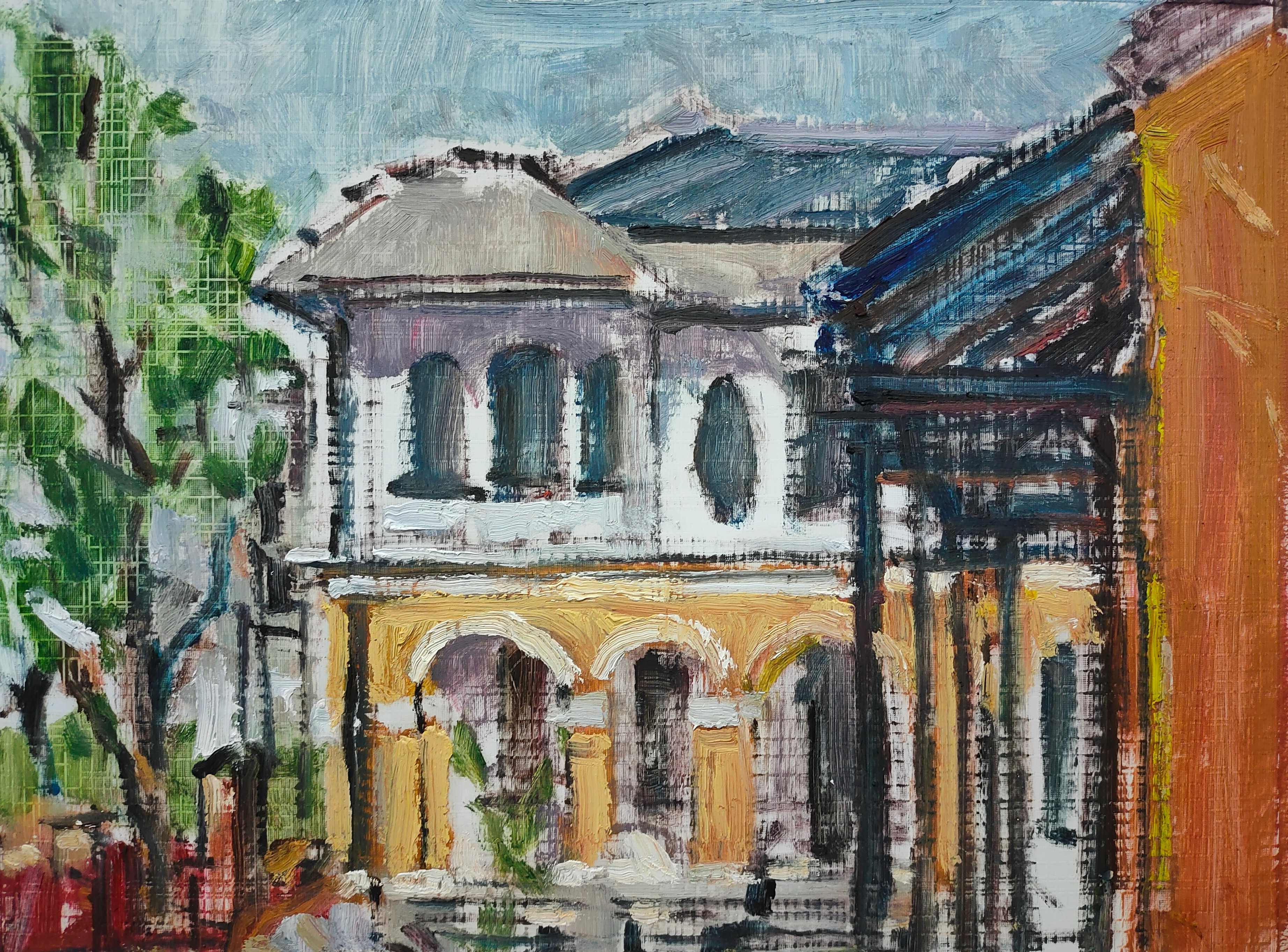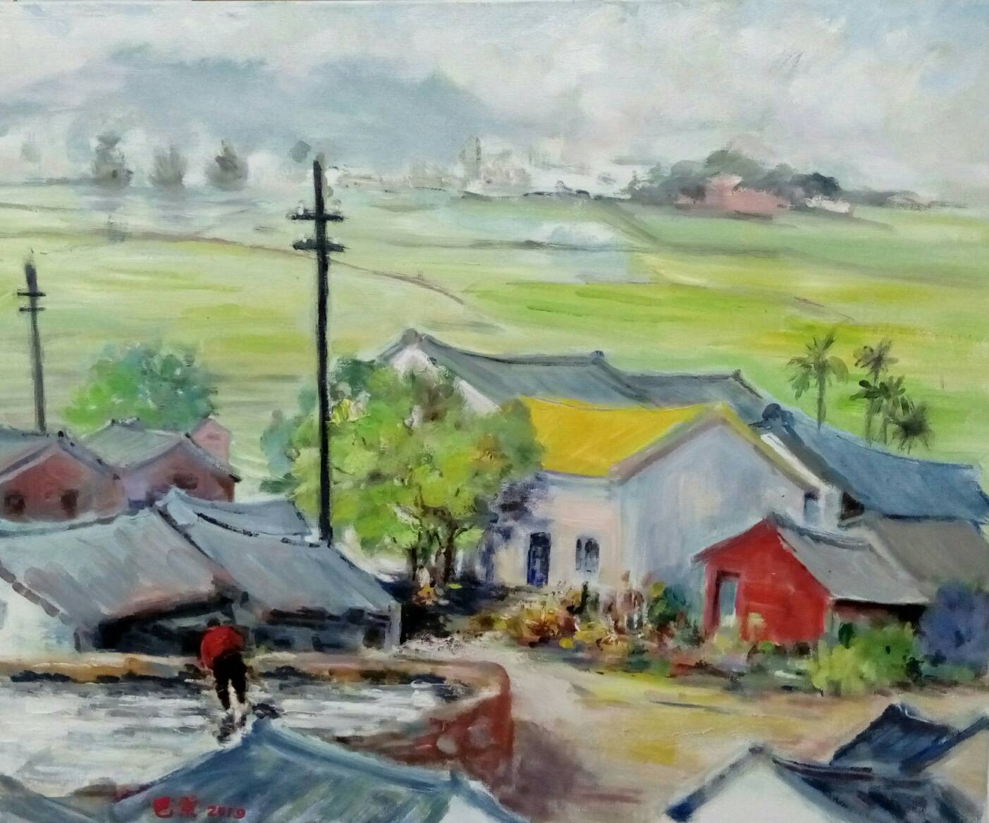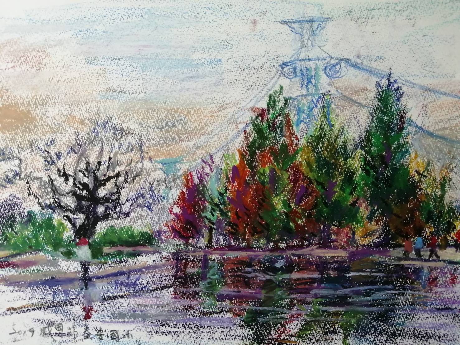In the process of creation, I discover that the stronger, the faster the rhythm in my brush is, the more intense my emotions are shown. It is satisfying, however, I found it’s hard to bear the power of silence. With the composition of the buildings, the bridges and the street lamps in the picture, it’s like time telling a story tempered by the history of thousands of years. “It is the water city under the mask."