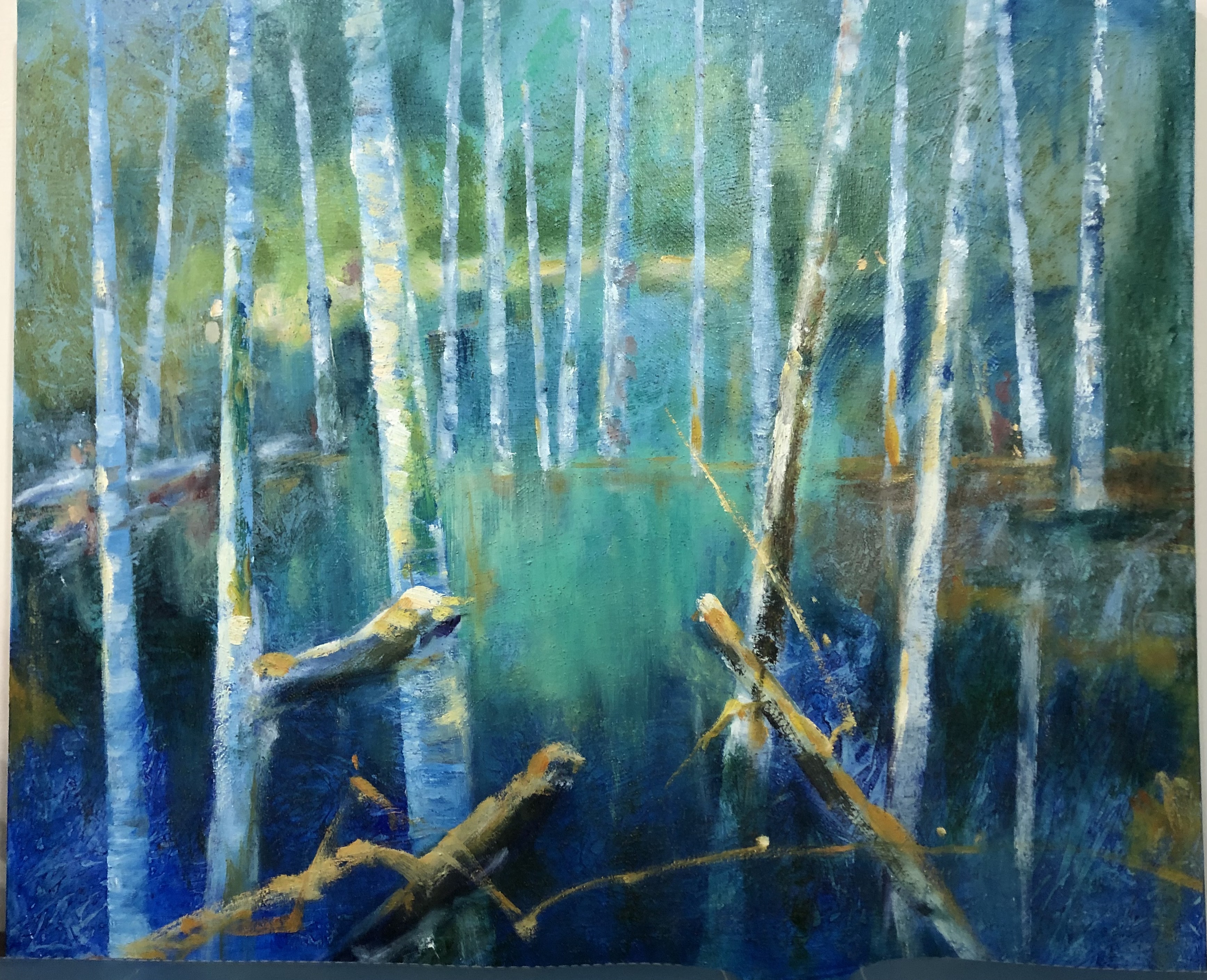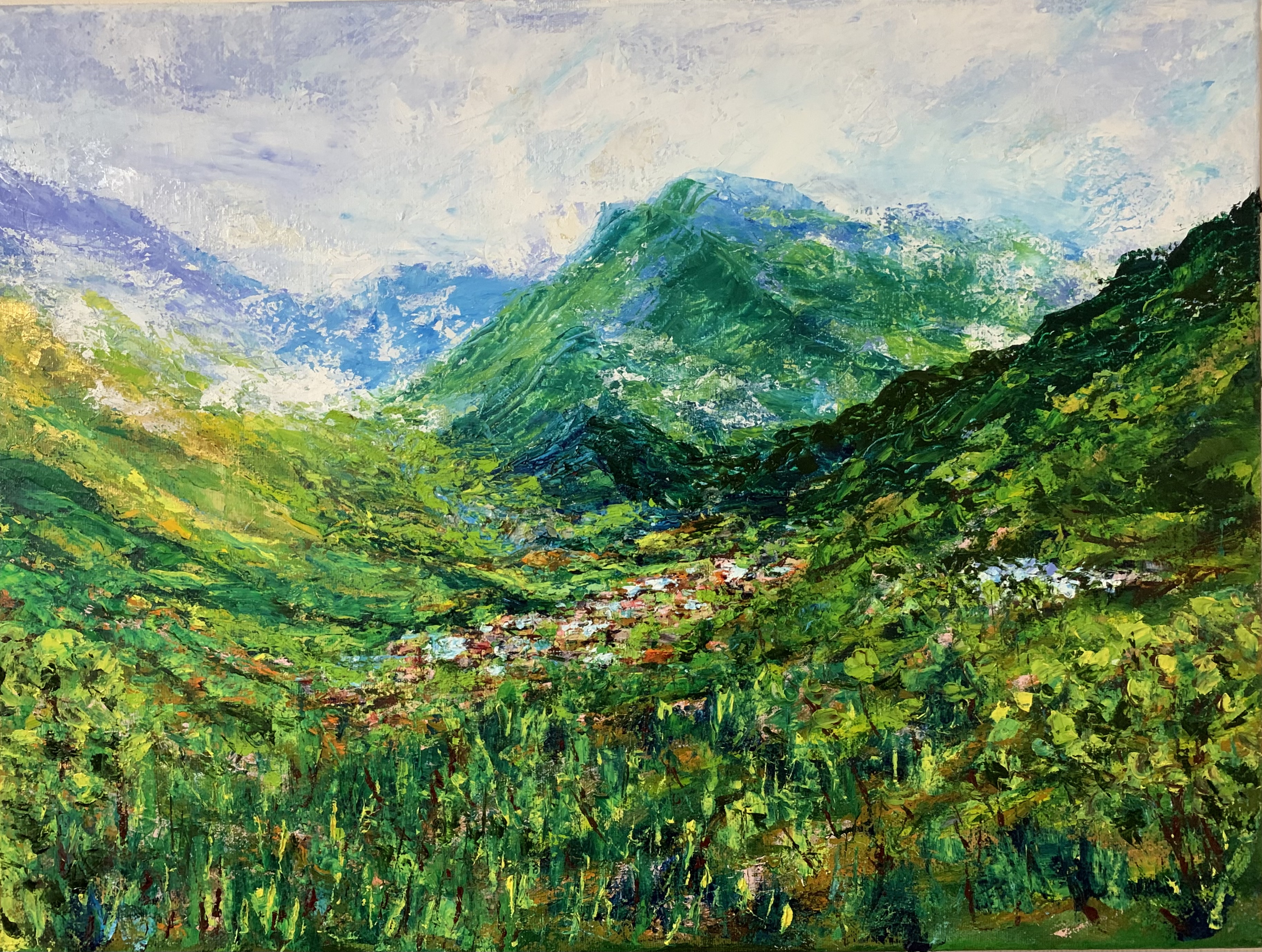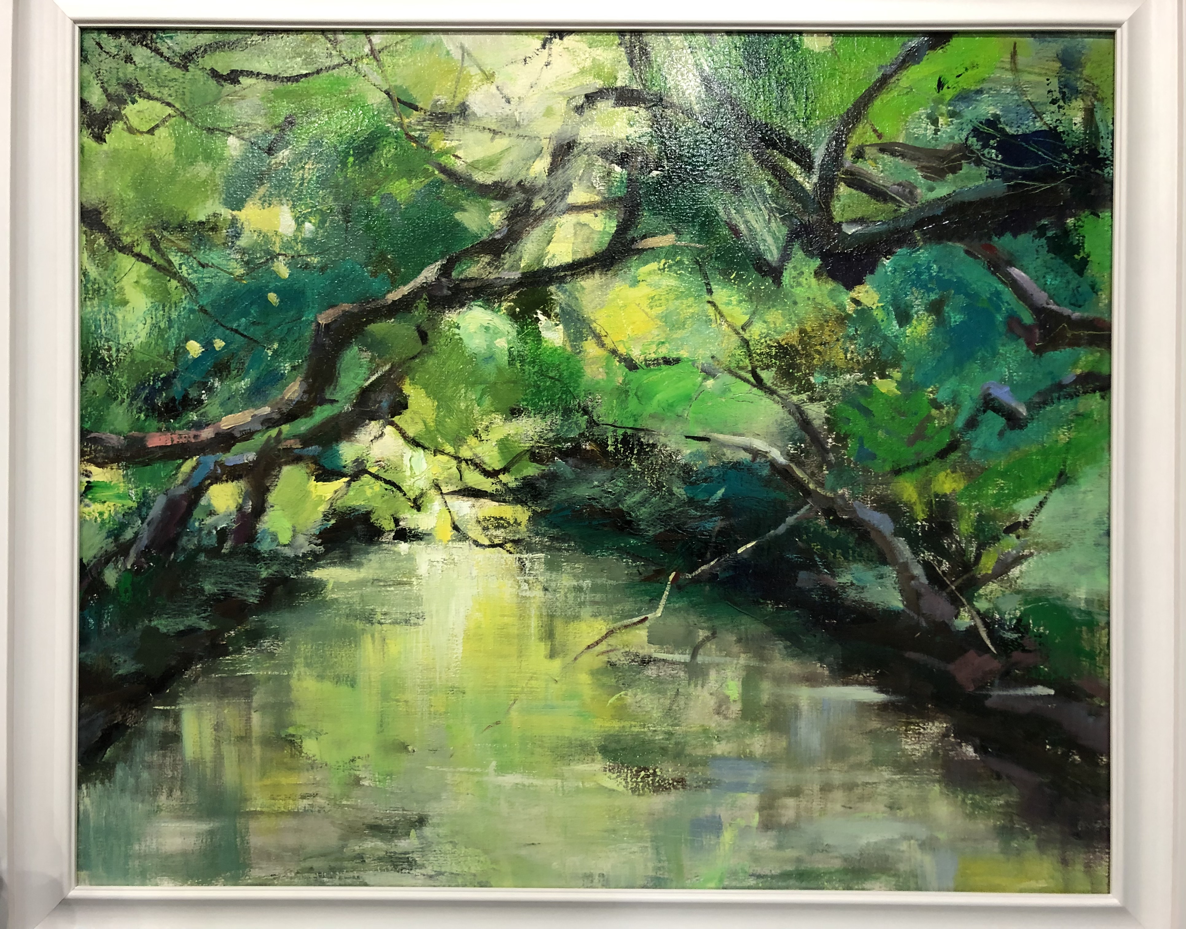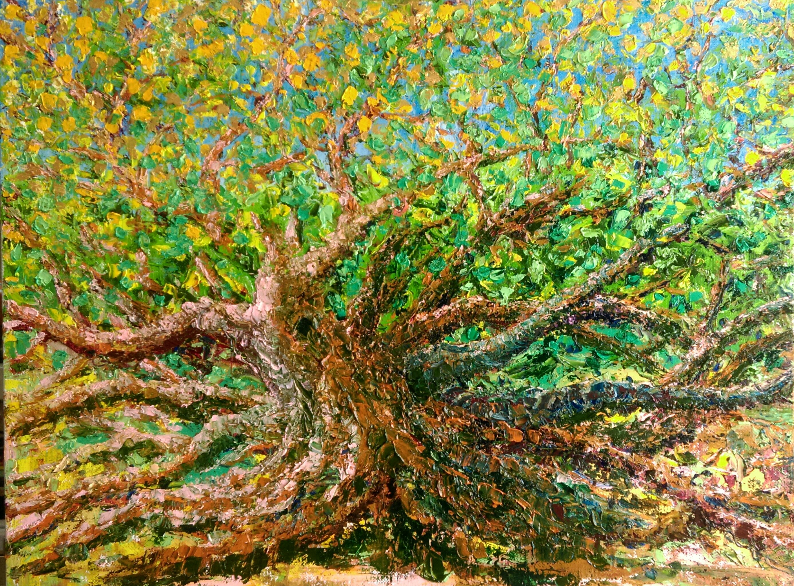 The color green creates a mystical quality, each forest a different shade of green, brimming with vitality. The unique technique creates a sense of mystery, inviting immersion.