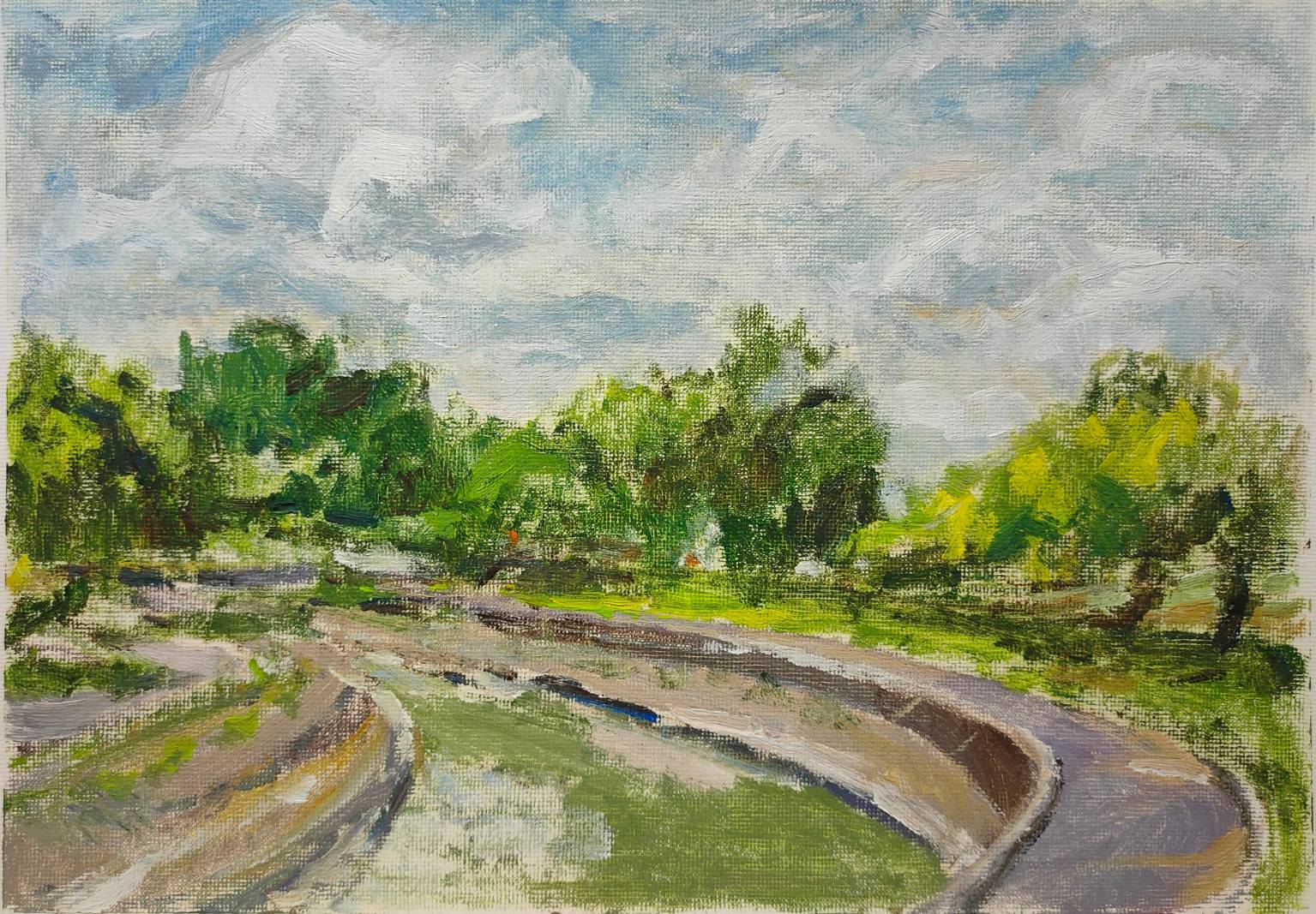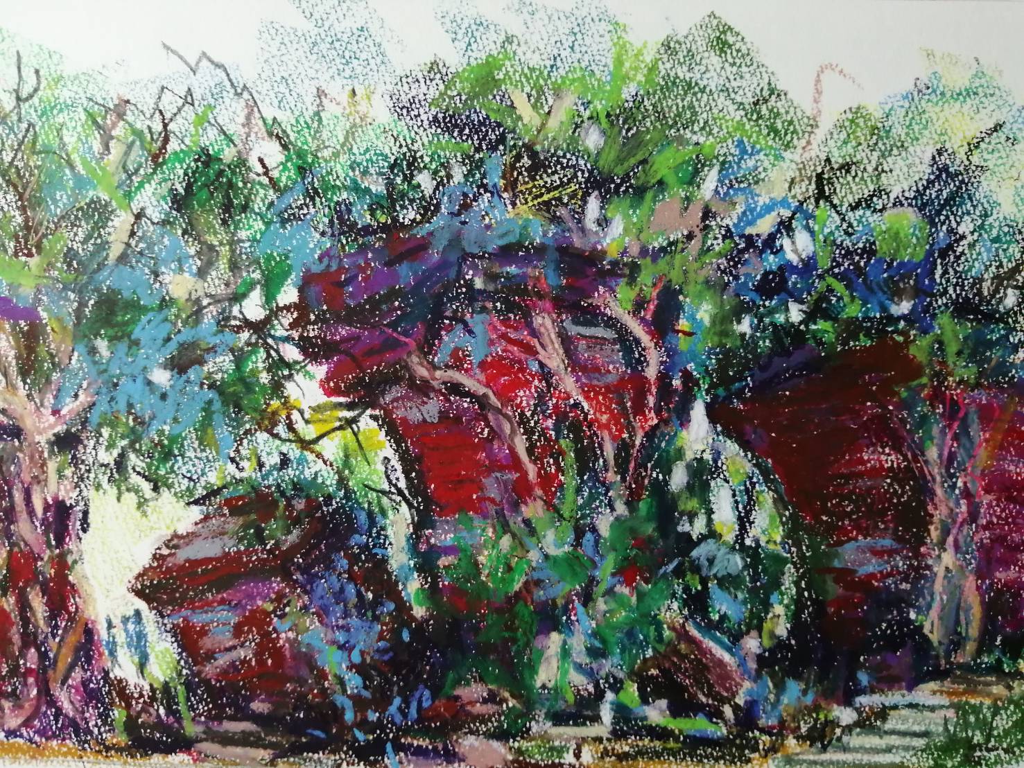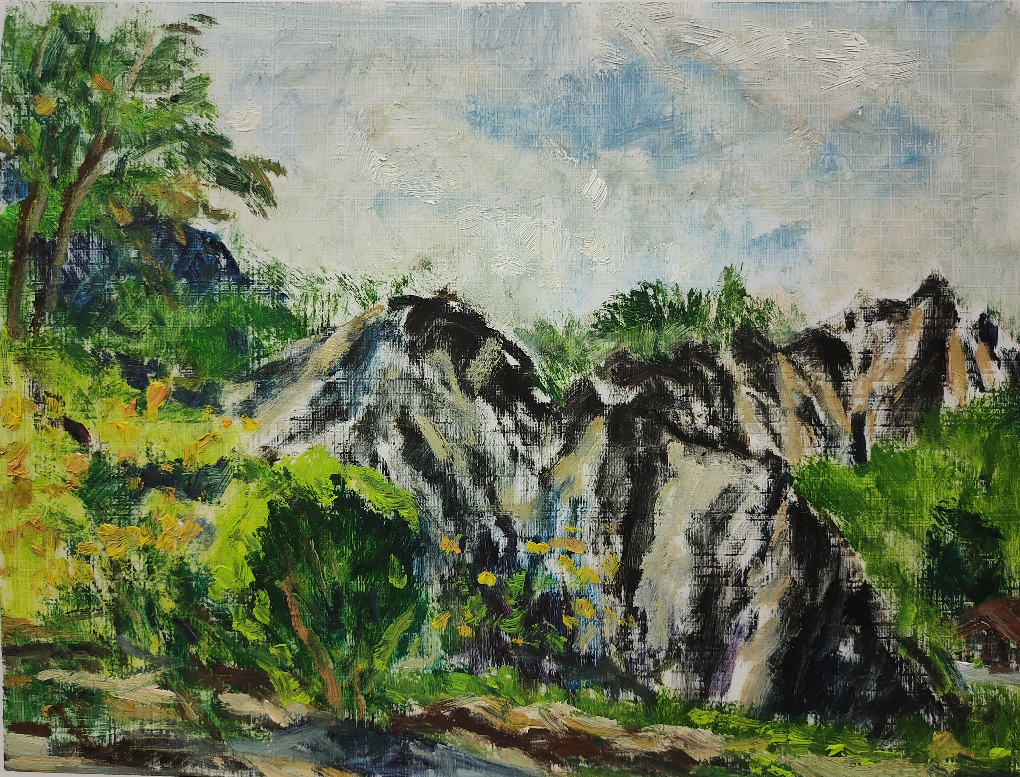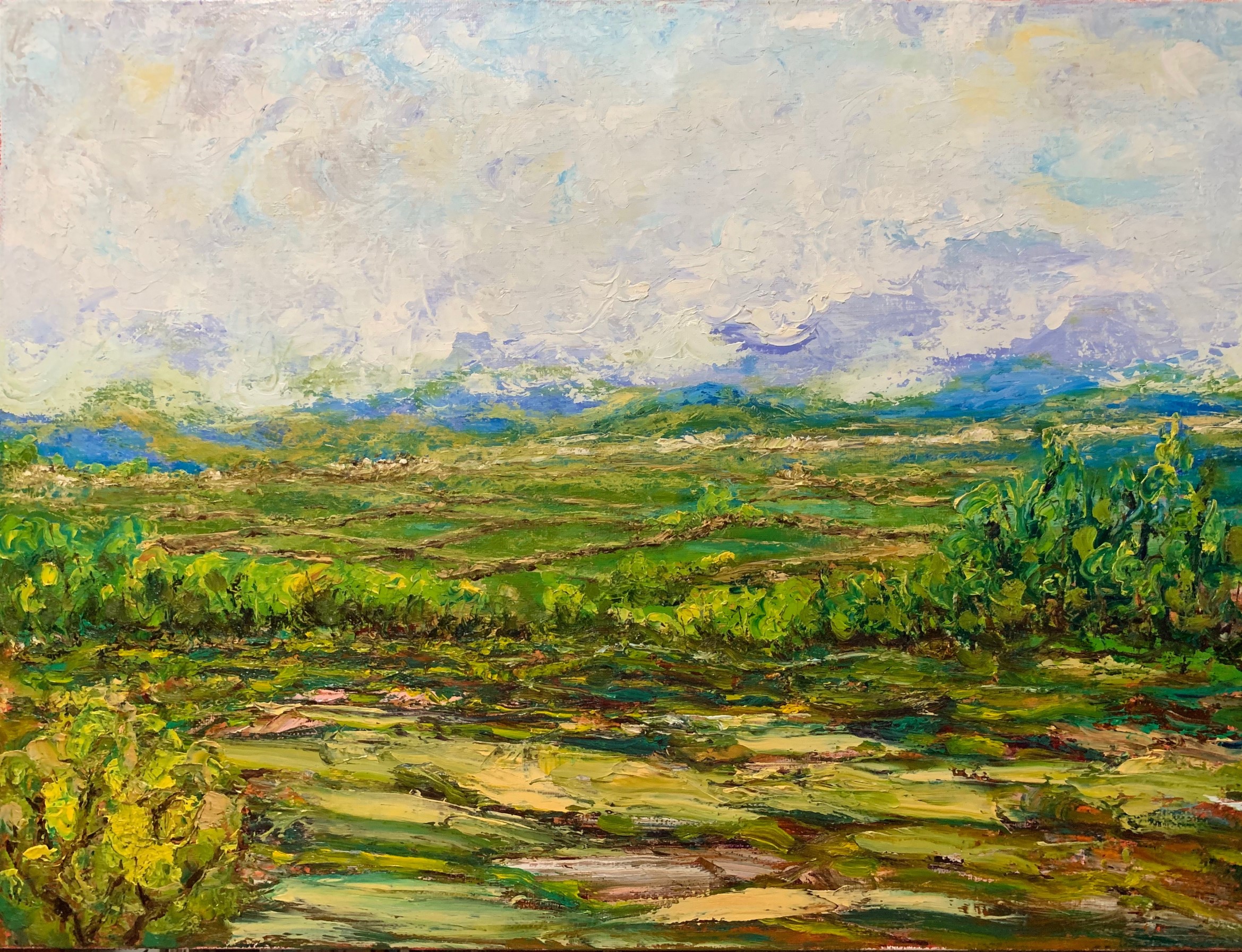 The color green creates a mystical quality, each forest a different shade of green, brimming with vitality. The unique technique creates a sense of mystery, inviting immersion.