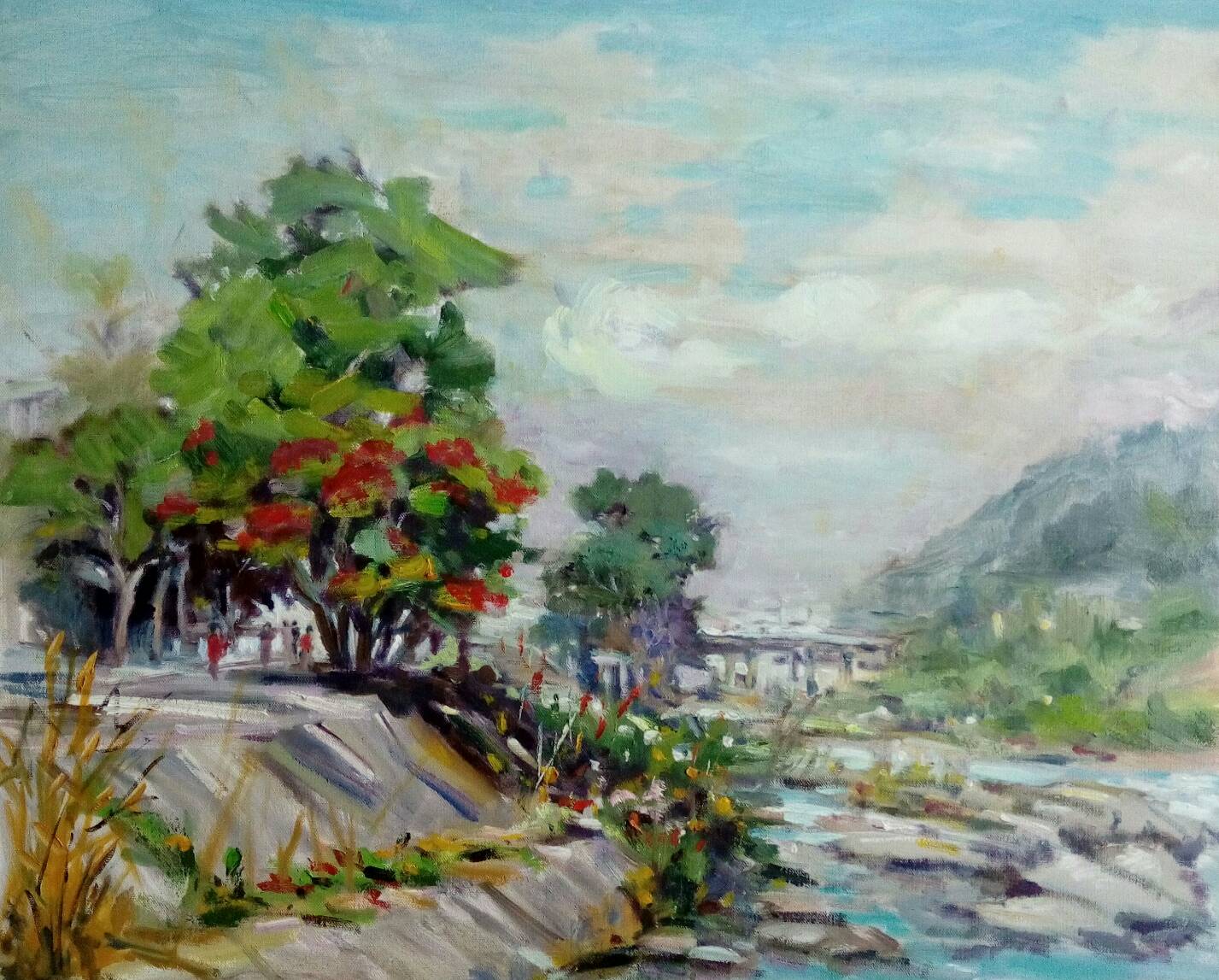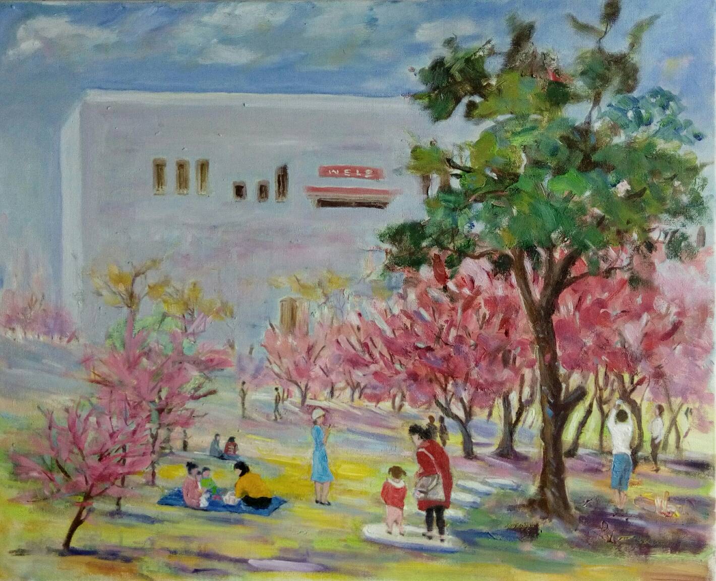 夢回沖繩/壓克力媒材/40F/2024 “An Amazing Glimpse of Okinawa” The concept for this artwork demonstrates that Okinawa’s beauty is full of my favorite flowers and the seashore sceneries; therefore, this piece is made of my favorite elements in view of such an amazing glimpse of Okinawa. The ideology of this painting starts from a distant view of a rising wall as well as the street lamps slowly lighting up on the other side of the road. Besides, the twilight often induces rich and unique emotions and feelings from people, in addition to letting go of the pressure and busyness of life, enjoying a moment of peace and satisfaction, and waiting for a new day.