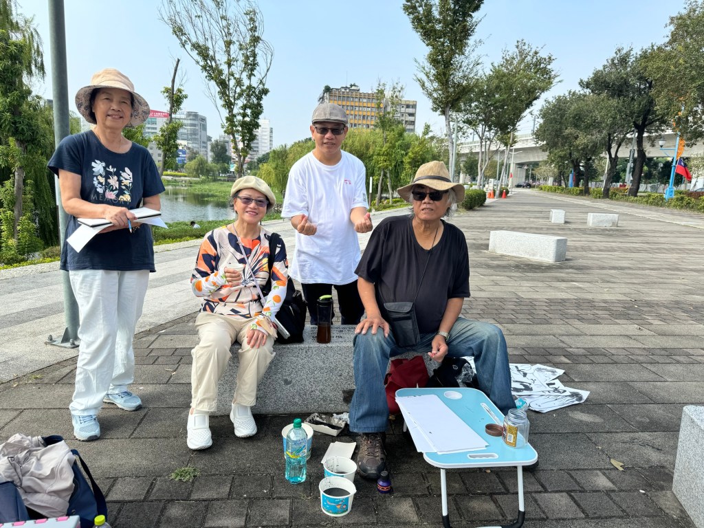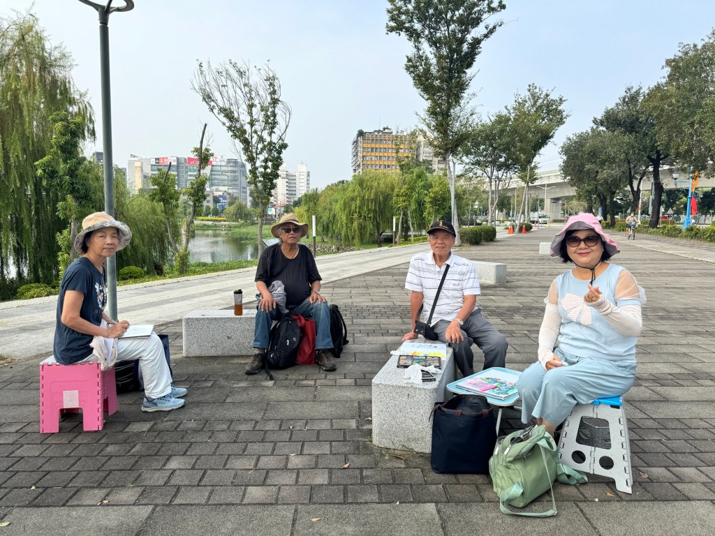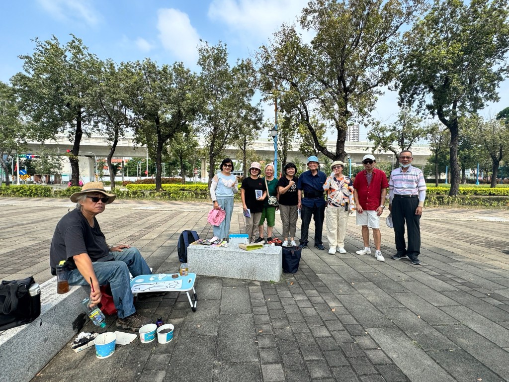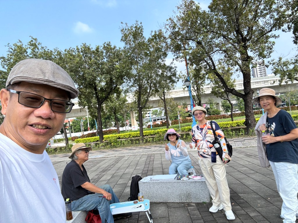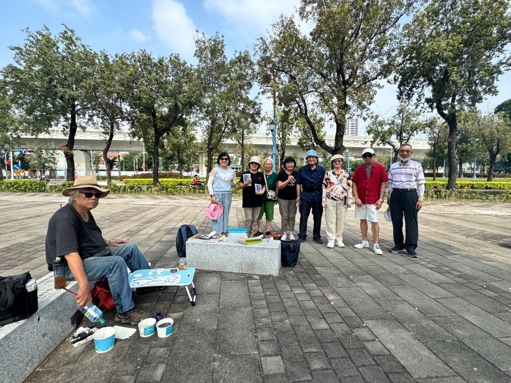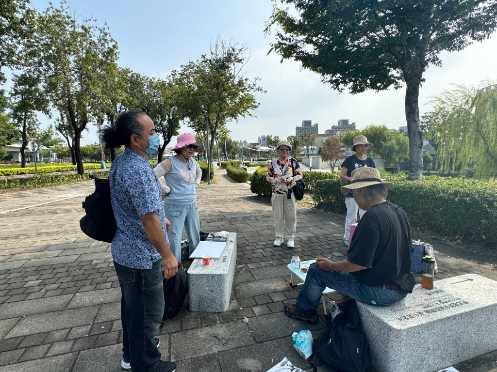 October 18: Our joint outdoor painting event for artists from northern, central, and southern Taiwan took place at the Imperial Sugar Factory this time. Although there were fewer participants compared to our last joint session in Jiufen, many enthusiastic people still joined. From the north, we had Teacher He Zhaoqiu’s eldest daughter, Sister Danhong, Teacher Hu Dahua, Sister Ai Hua, Sister Fen Fen, and Chairman Yang. From the south, Teacher Kuanyu and Teacher Yiming joined. Our local Taichung team included Teacher Jian Junhui, who led a group of students, Teacher Ji Xiang, Teacher Lai Qinghe, Teacher Li Cizhen, Bhutanese artist Wang Chudan, Teacher Zhang Dengxin, Teacher Zhang Qinzong, Sister Shurong, Sister Bajing, Secretary-General Luo Kunmei, and of course, me.