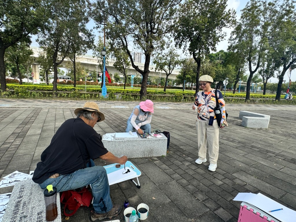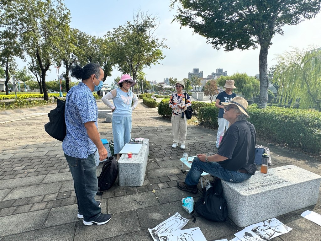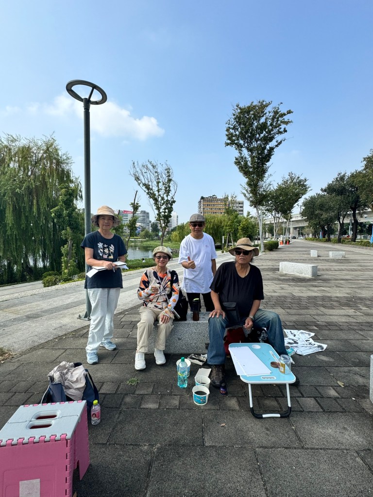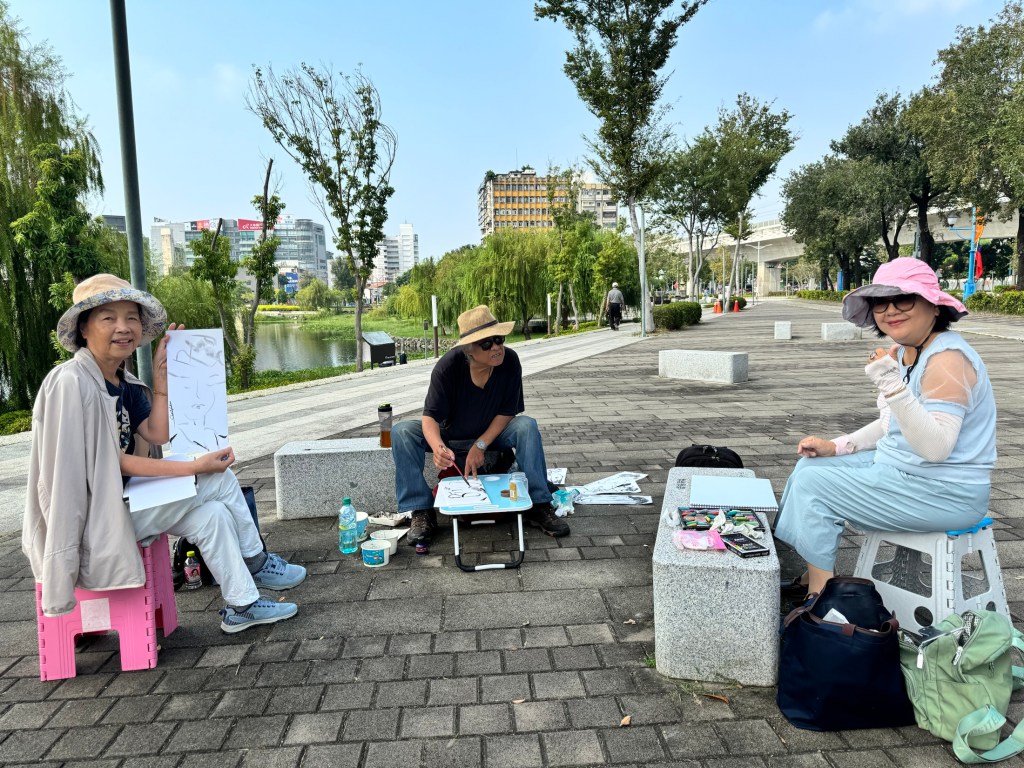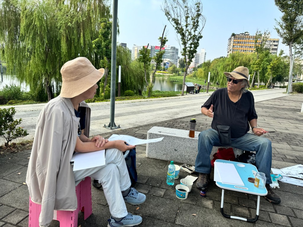 October 18: Our joint outdoor painting event for artists from northern, central, and southern Taiwan took place at the Imperial Sugar Factory this time. Although there were fewer participants compared to our last joint session in Jiufen, many enthusiastic people still joined. From the north, we had Teacher He Zhaoqiu’s eldest daughter, Sister Danhong, Teacher Hu Dahua, Sister Ai Hua, Sister Fen Fen, and Chairman Yang. From the south, Teacher Kuanyu and Teacher Yiming joined. Our local Taichung team included Teacher Jian Junhui, who led a group of students, Teacher Ji Xiang, Teacher Lai Qinghe, Teacher Li Cizhen, Bhutanese artist Wang Chudan, Teacher Zhang Dengxin, Teacher Zhang Qinzong, Sister Shurong, Sister Bajing, Secretary-General Luo Kunmei, and of course, me.