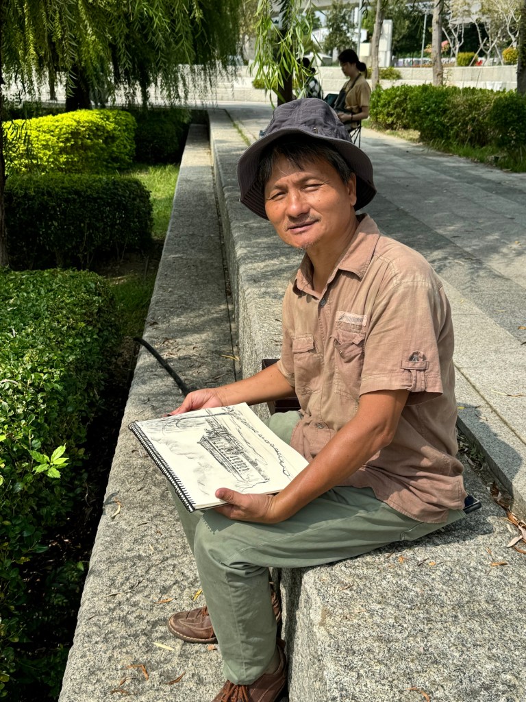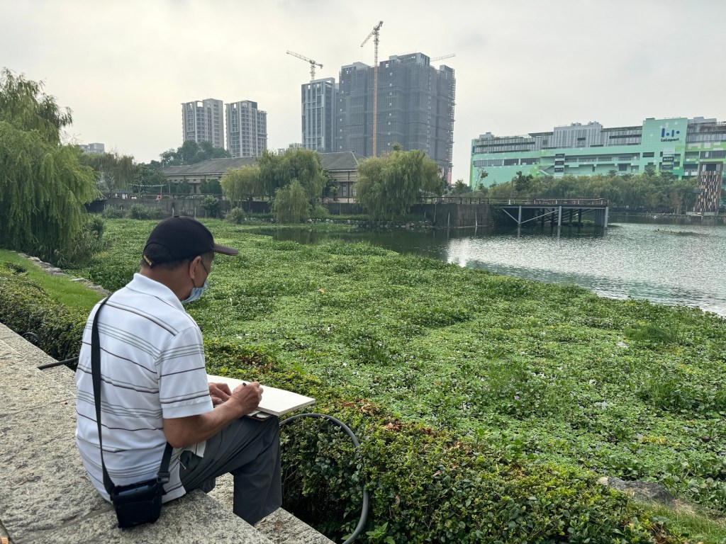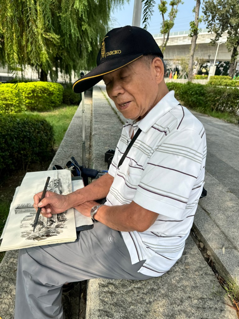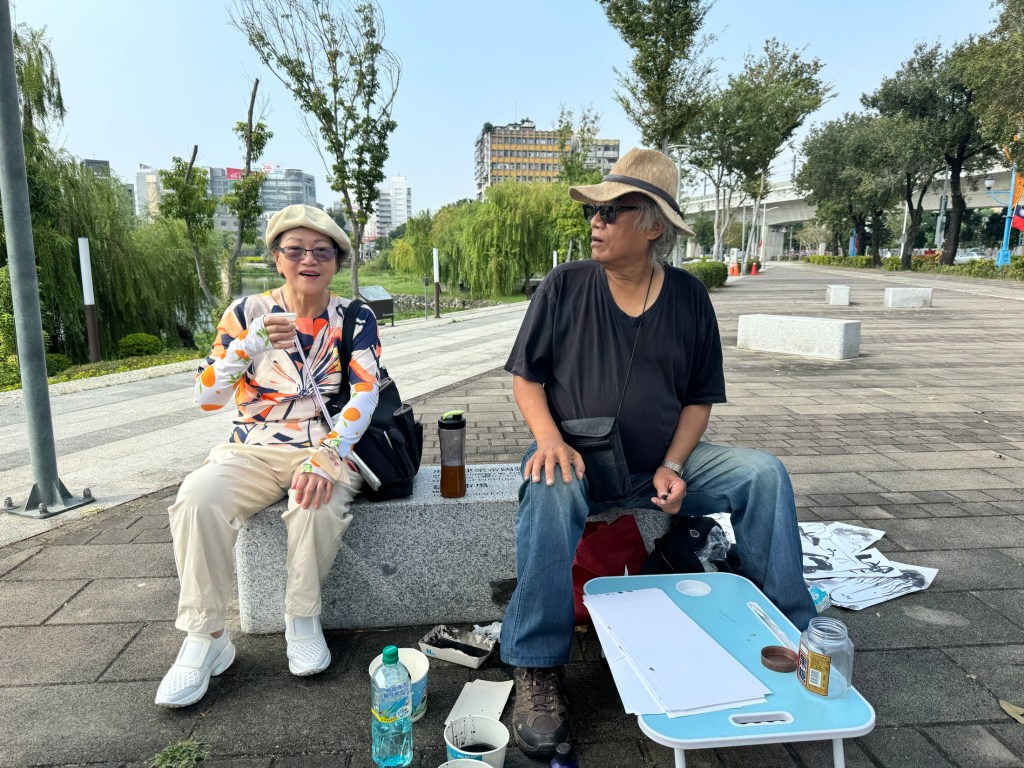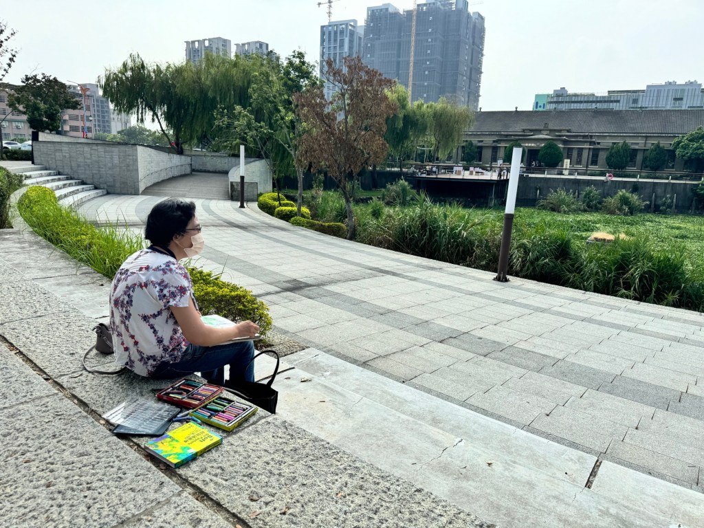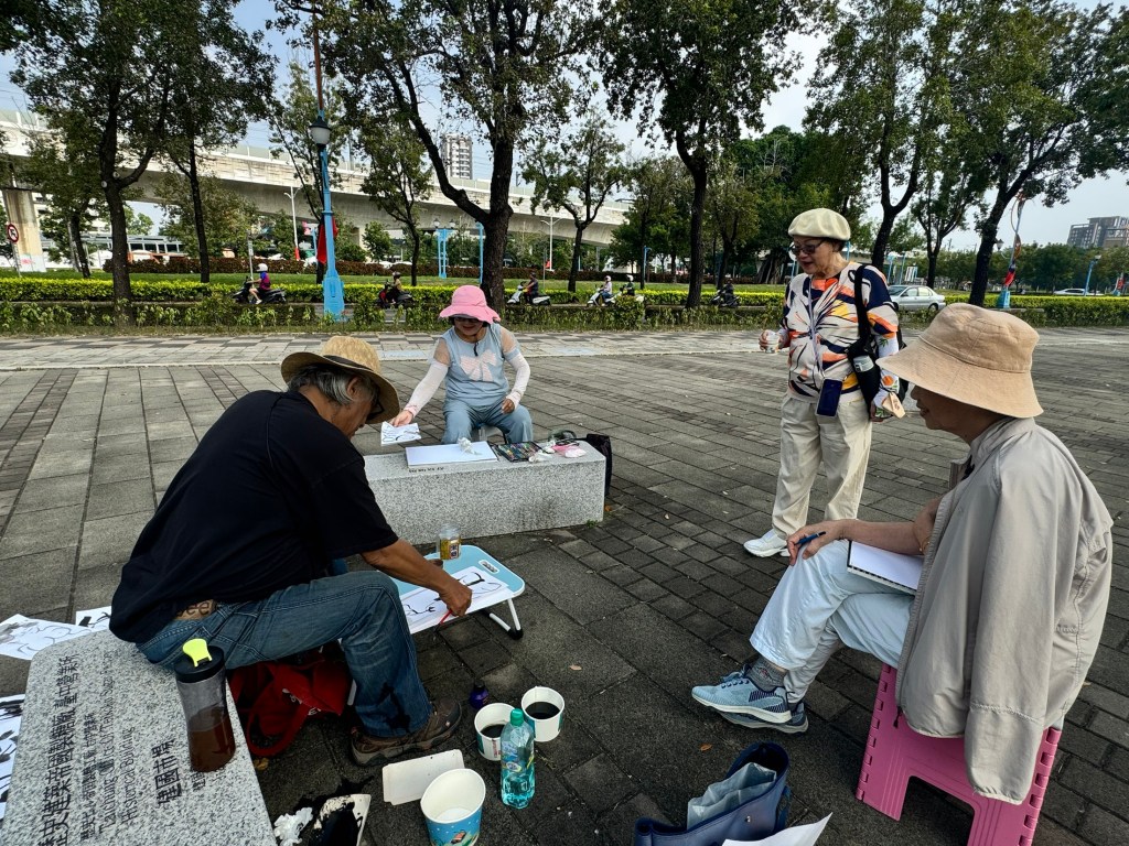 October 18: Our joint outdoor painting event for artists from northern, central, and southern Taiwan took place at the Imperial Sugar Factory this time. Although there were fewer participants compared to our last joint session in Jiufen, many enthusiastic people still joined. From the north, we had Teacher He Zhaoqiu’s eldest daughter, Sister Danhong, Teacher Hu Dahua, Sister Ai Hua, Sister Fen Fen, and Chairman Yang. From the south, Teacher Kuanyu and Teacher Yiming joined. Our local Taichung team included Teacher Jian Junhui, who led a group of students, Teacher Ji Xiang, Teacher Lai Qinghe, Teacher Li Cizhen, Bhutanese artist Wang Chudan, Teacher Zhang Dengxin, Teacher Zhang Qinzong, Sister Shurong, Sister Bajing, Secretary-General Luo Kunmei, and of course, me.